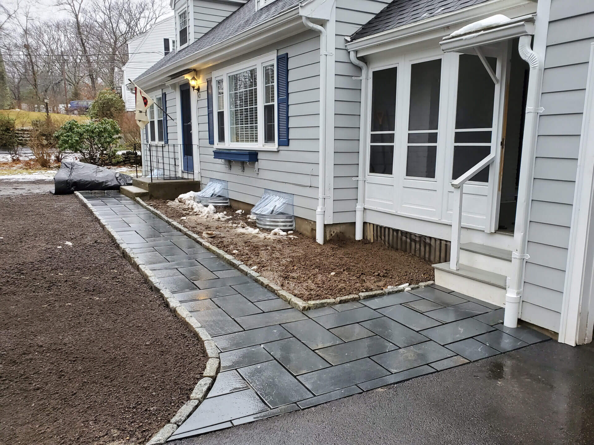 Enhance your outdoor space with granite. It is beautiful and strong, making it a great choice for homes and businesses. At Riverfront Landscape, we design and install granite features like steps, walkways, mailbox posts, and stone walls. We can help you create granite solutions that match your vision and improve your entryway or outdoor area.